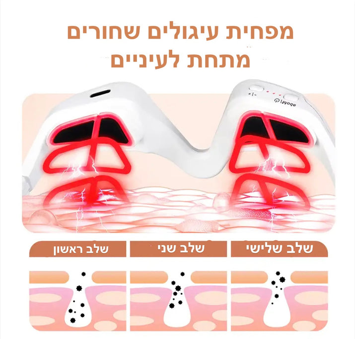 חידוש העיניים שלך עם מכשיר מסאז' חדשני המיועד להפחית עיגולים כהים ושקיות בעיניים, ולספק טיפול חיוני וחידוש למראה בהיר ובריא יותר.
